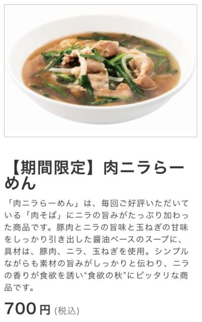日高屋の肉ニラらーめん。写真は麺大盛り。