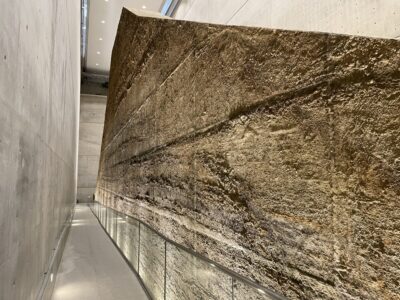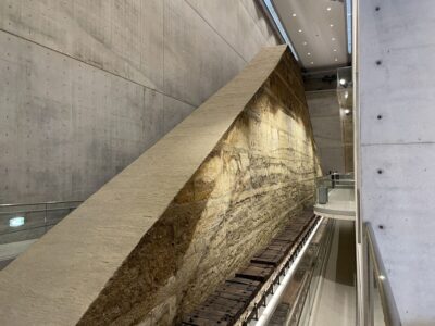 ここの目玉は、堤を垂直に切り取った断面の展示だ。本物の堤をブロック状に切り取り、樹脂で保護し、室内で接合した。すごいことをする。