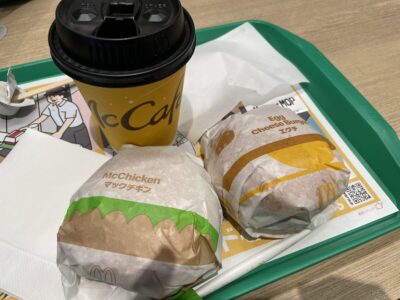 マックチキン190円、エッグチーズバーガー230円、コーヒー130円。