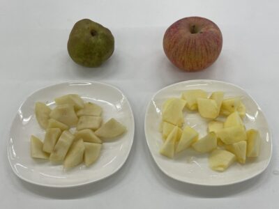 かんちさんが地元産のりんごとラ・フランスをくれた。