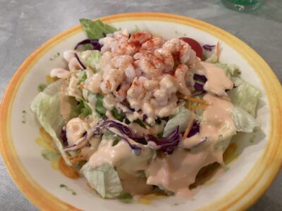 昼飯を食べていない状態で16時過ぎに食べた小エビのサラダ。ドレッシングのうまさに震えた。