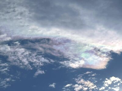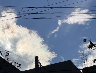 太陽の近くにこういう雲があるときは割とよく見られるので、太陽を直視しないように気をつけつつ観察してみてはいかが。ていうか直接肉眼で見るとかなり眩しいから、スマホを壁にしながら撮って写真で確認するのもおすすめ。