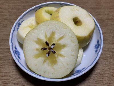 かんちさんが地元産のりんごとラ・フランスをくれた。
